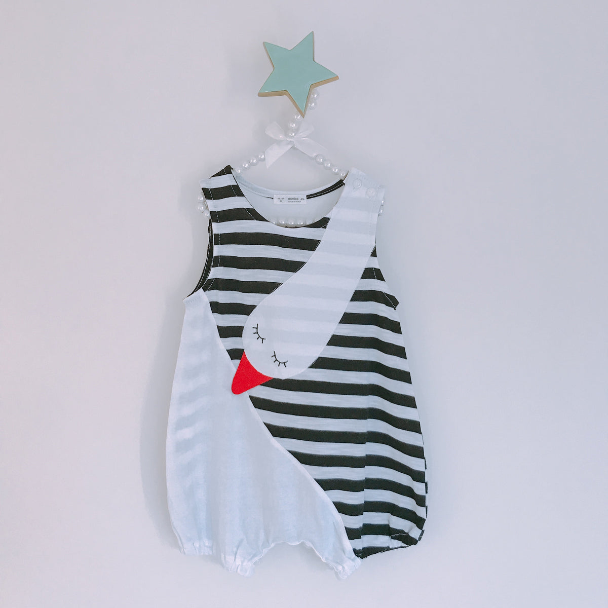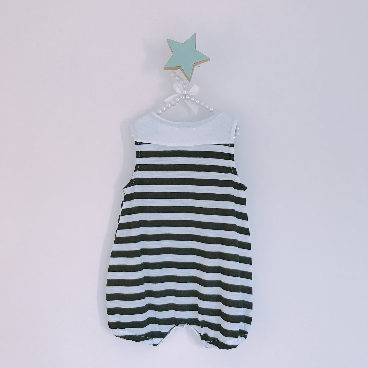 블랙 & 화이트 그리드 스트라이프 버블 롬퍼