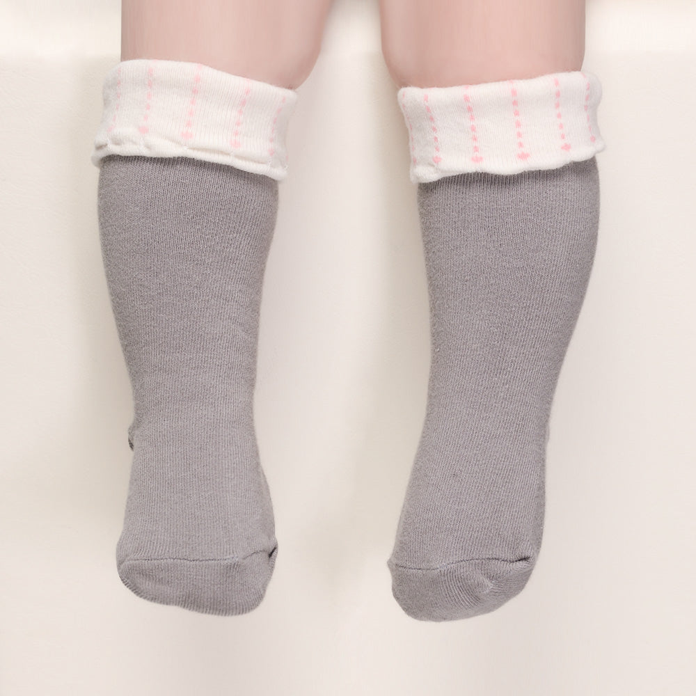 롤오버 화이트 데코 커프가 있는 그레이 니삭스.