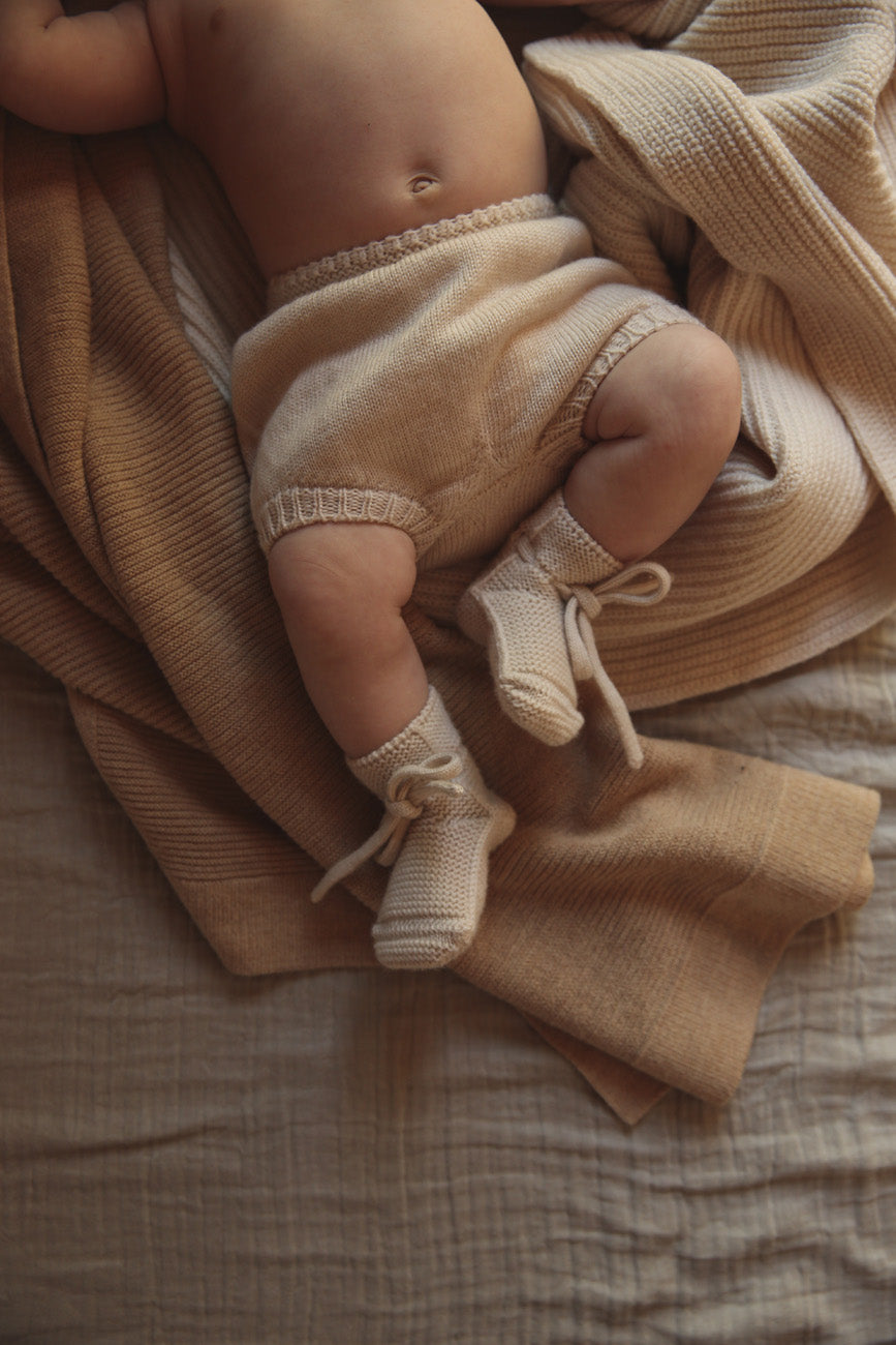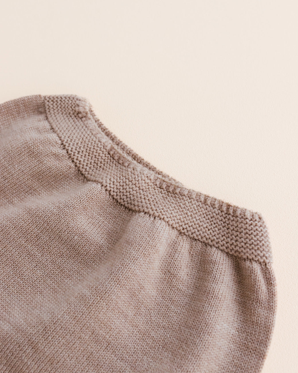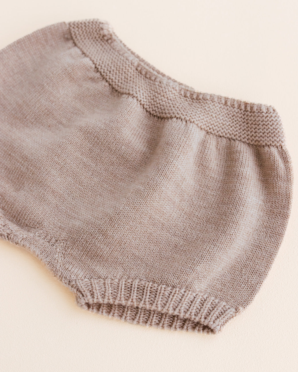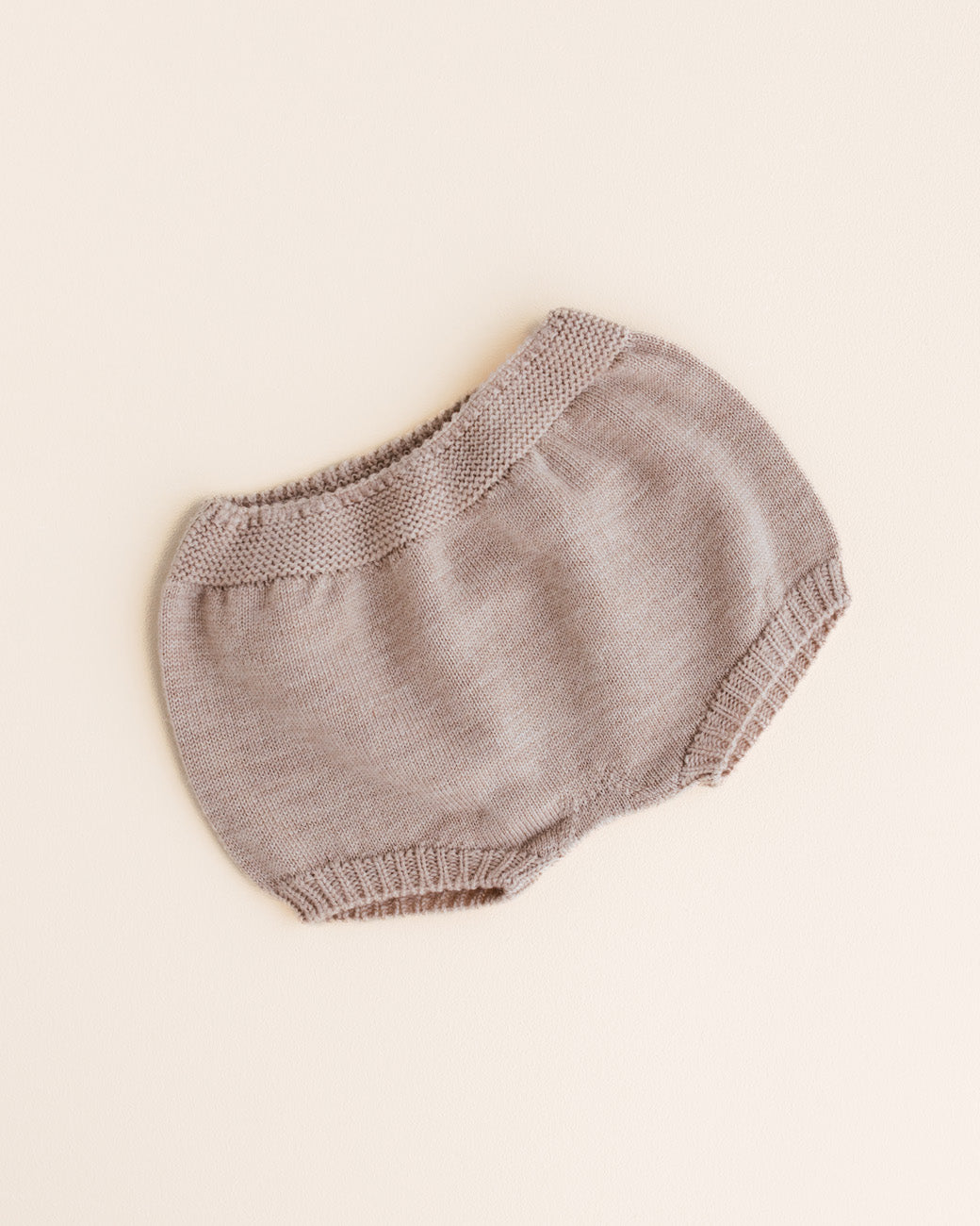 1피스로 편직된 매끄러운 블루머입니다. 앞면과 뒷면이 없고 솔기가 없어 아기가 착용하기 매우 편안합니다. 허리에 편안함을 더하기 위해 울과 함께 신축성 있는 실을 편직했습니다. 일반 허리밴드보다 텐션이 더 부드러워요. 블루머에 있는 작은 스티치 디테일은 바지의 형태를 만들기 위한 방법으로 앞뒷면을 함께 재봉하지 않습니다. 100% 메리노 울 소재로 제작되었습니다. 일년 내내 착용 가능합니다. 스웨터와 세트로 색상을 믹스매치하세요.