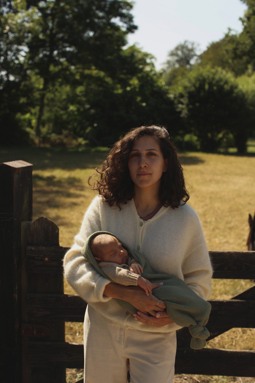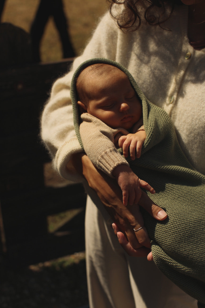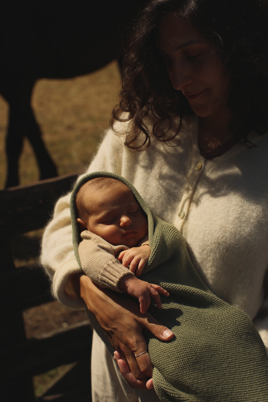 이 니트 누에고치에 아기를 감싸세요. 아기를 아늑하고 따뜻하게 유지해줍니다.