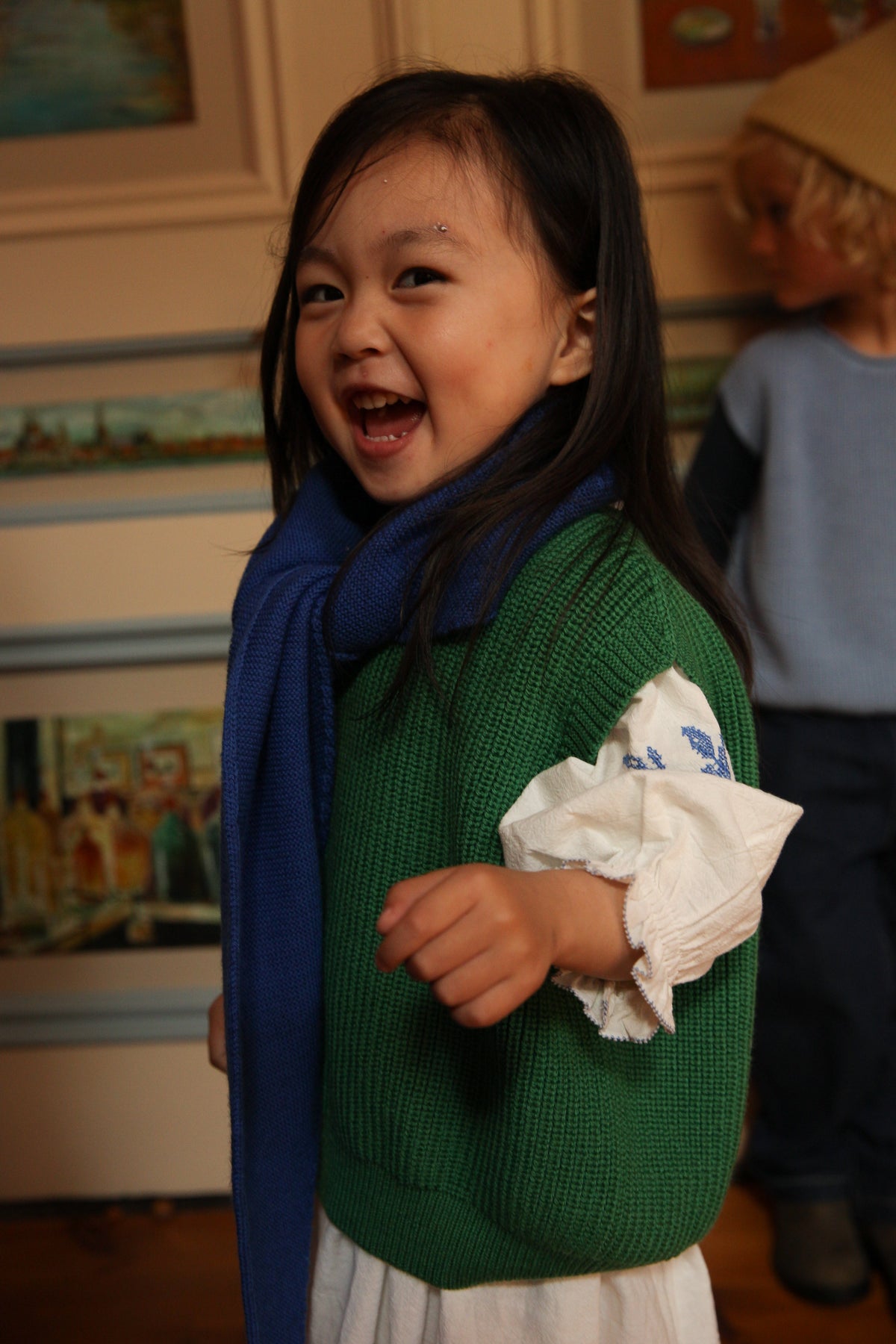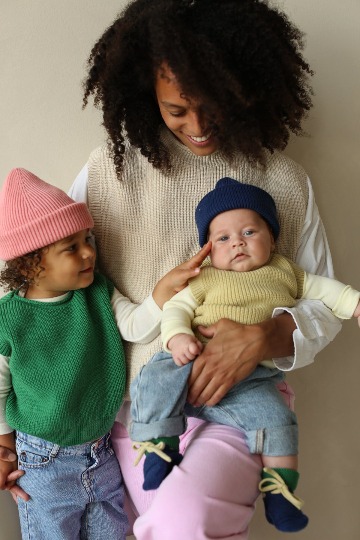 This seamless vest is knitted in one piece, what makes it very comfortable for babies. Thanks to our unique neckline, changing a baby is much easier. The collar stretches wide and is elastic. A subtle elastic thread in the collar allowing the neck to stretch when passing the head and then snugs on perfectly. The fisherman's rib makes it the softest vest. Combine it easily with a body to make a happy outfit.
