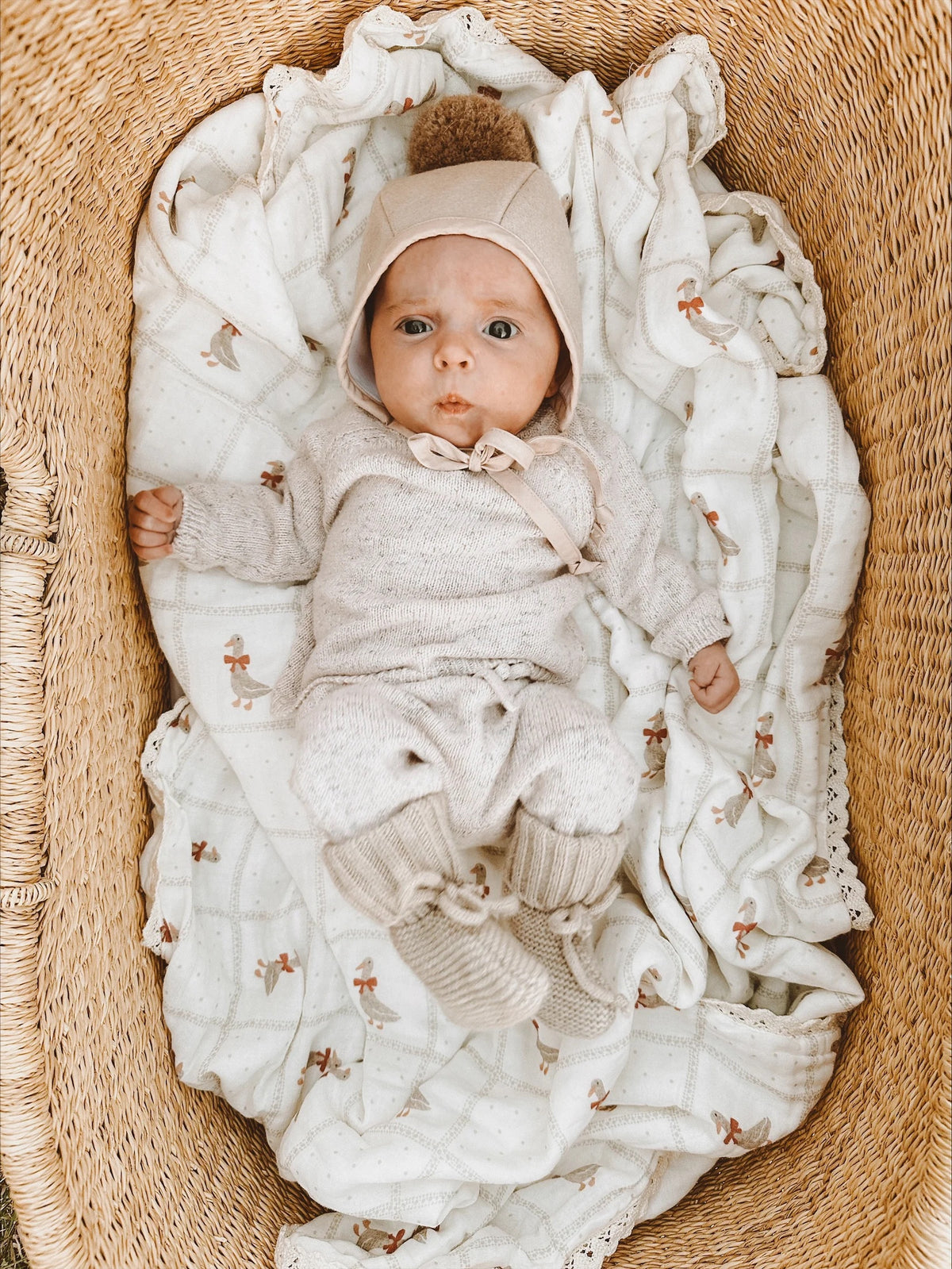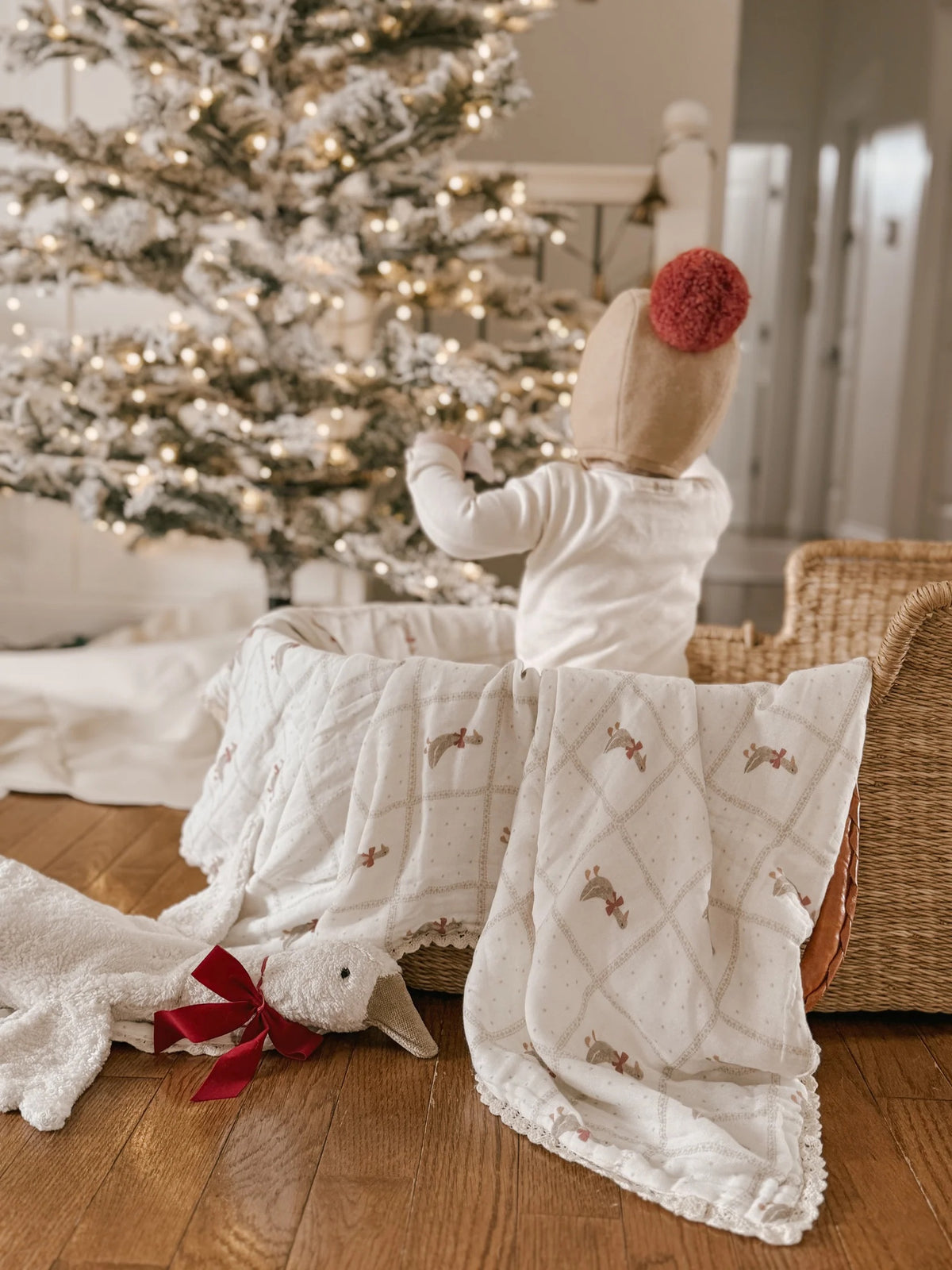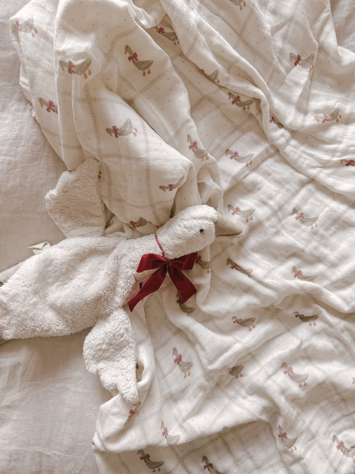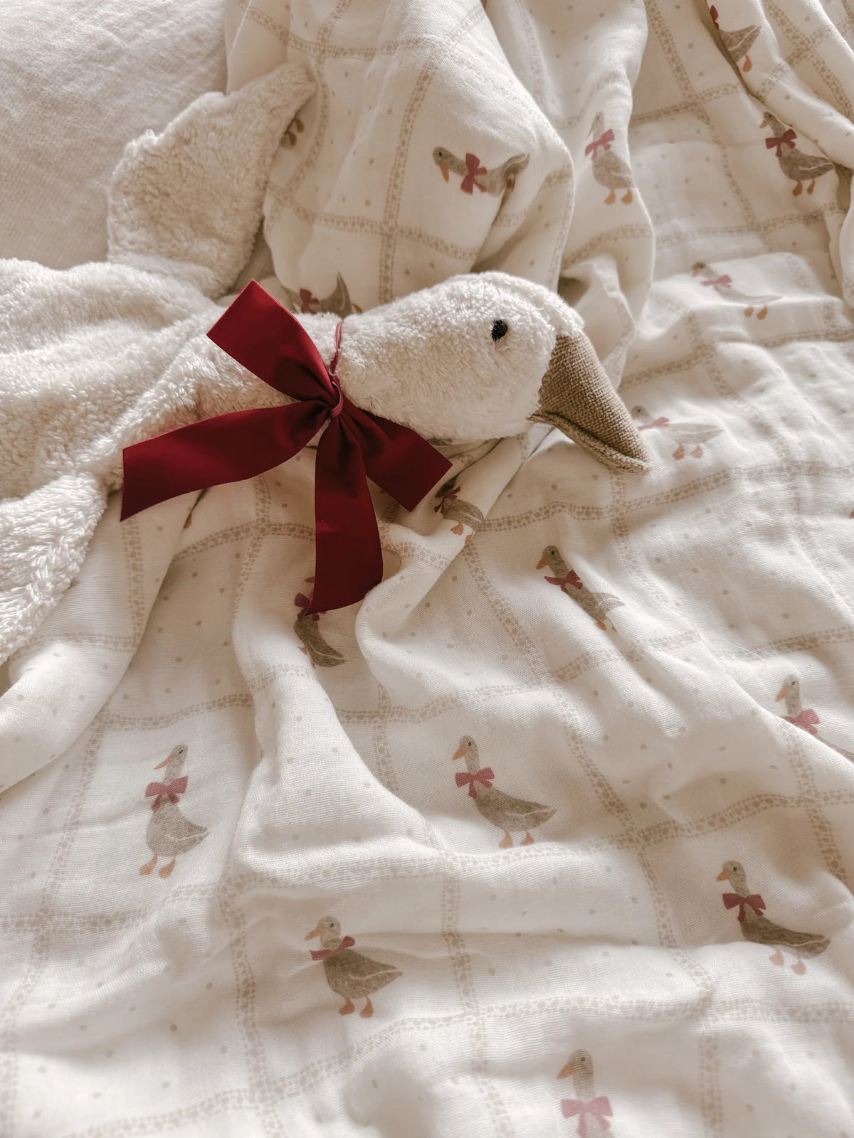 Red Bow Goose Quilted Gauze Blanket