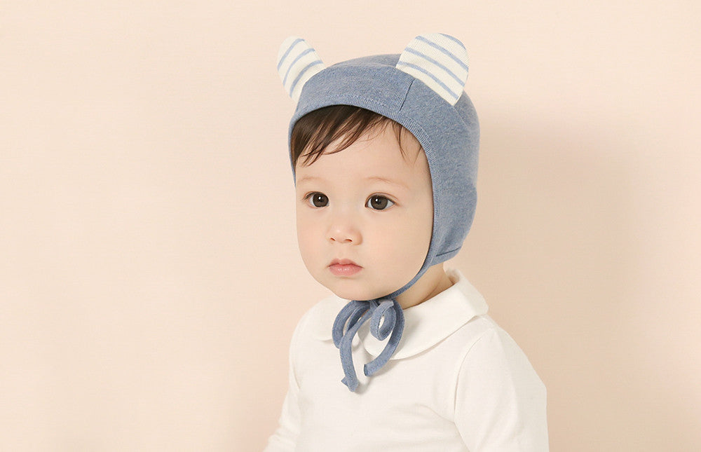 앞면 끈이 달린 귀여운 줄무늬 곰 귀 파일럿.