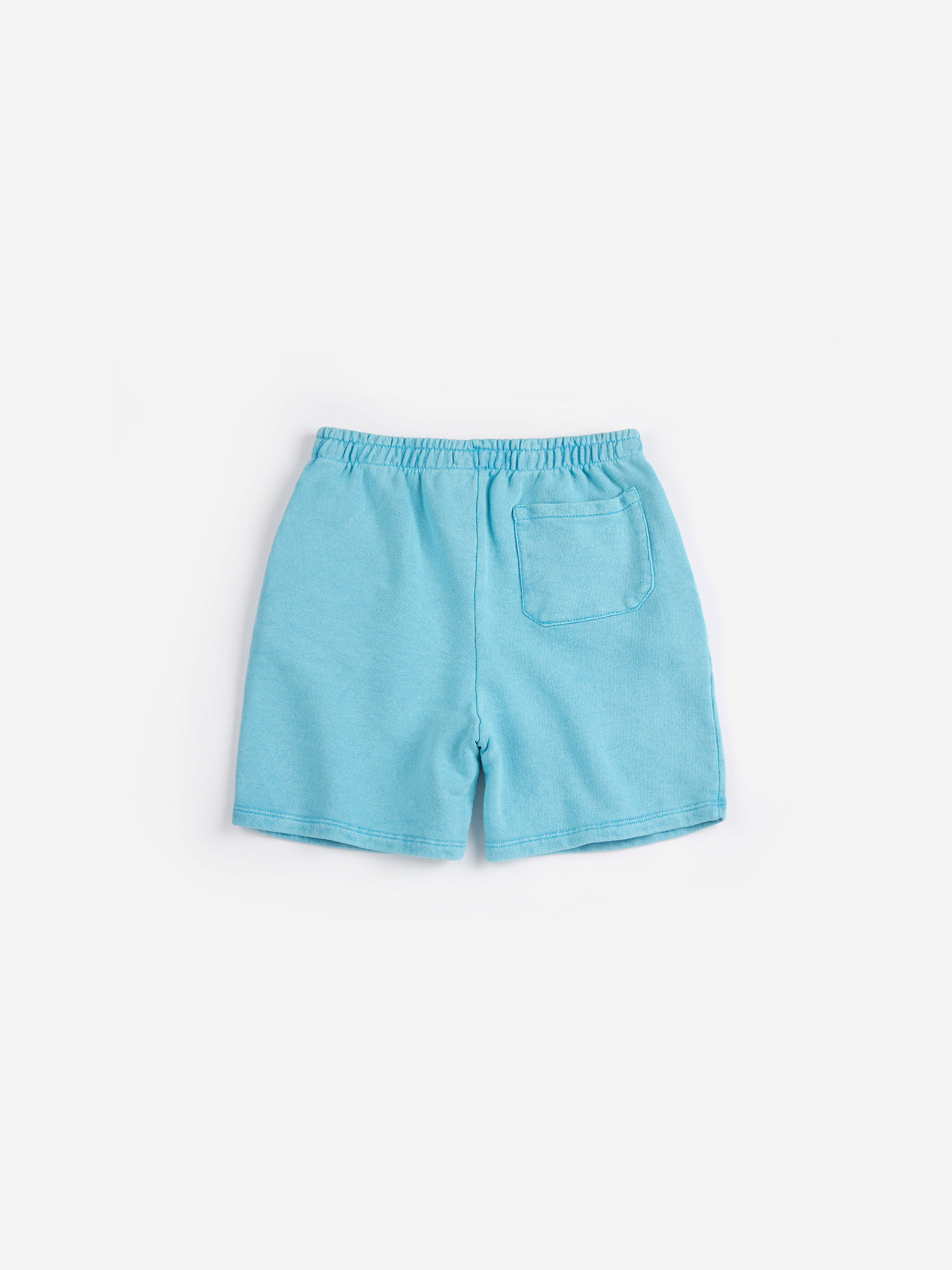 Light blue shorts. Designed with elasticated waistband, adjusted drawstring, over knee length, patch pocket, seam pocket, fleece and relaxed fit. Made in Spain.