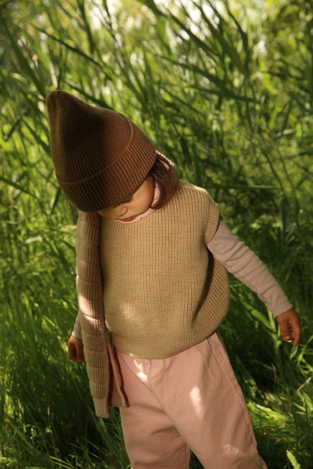 This seamless vest is knitted in one piece, what makes it very comfortable for babies. Thanks to our unique neckline, changing a baby is much easier. The collar stretches wide and is elastic. A subtle elastic thread in the collar allowing the neck to stretch when passing the head and then snugs on perfectly. The fisherman's rib makes it the softest vest. Combine it easily with a body to make a happy outfit.