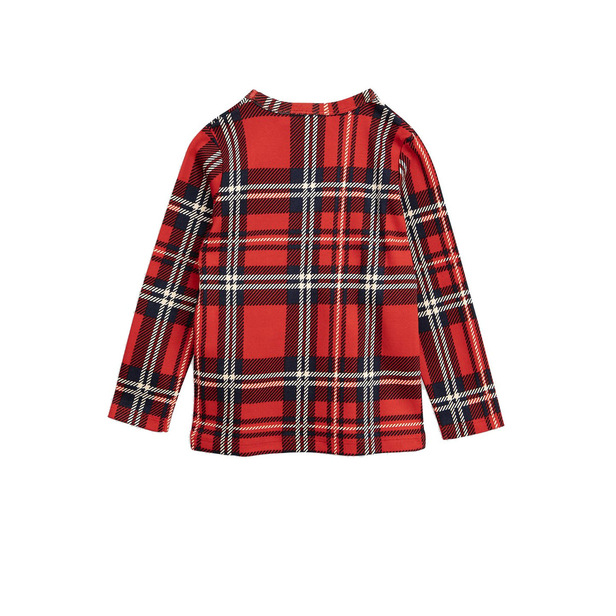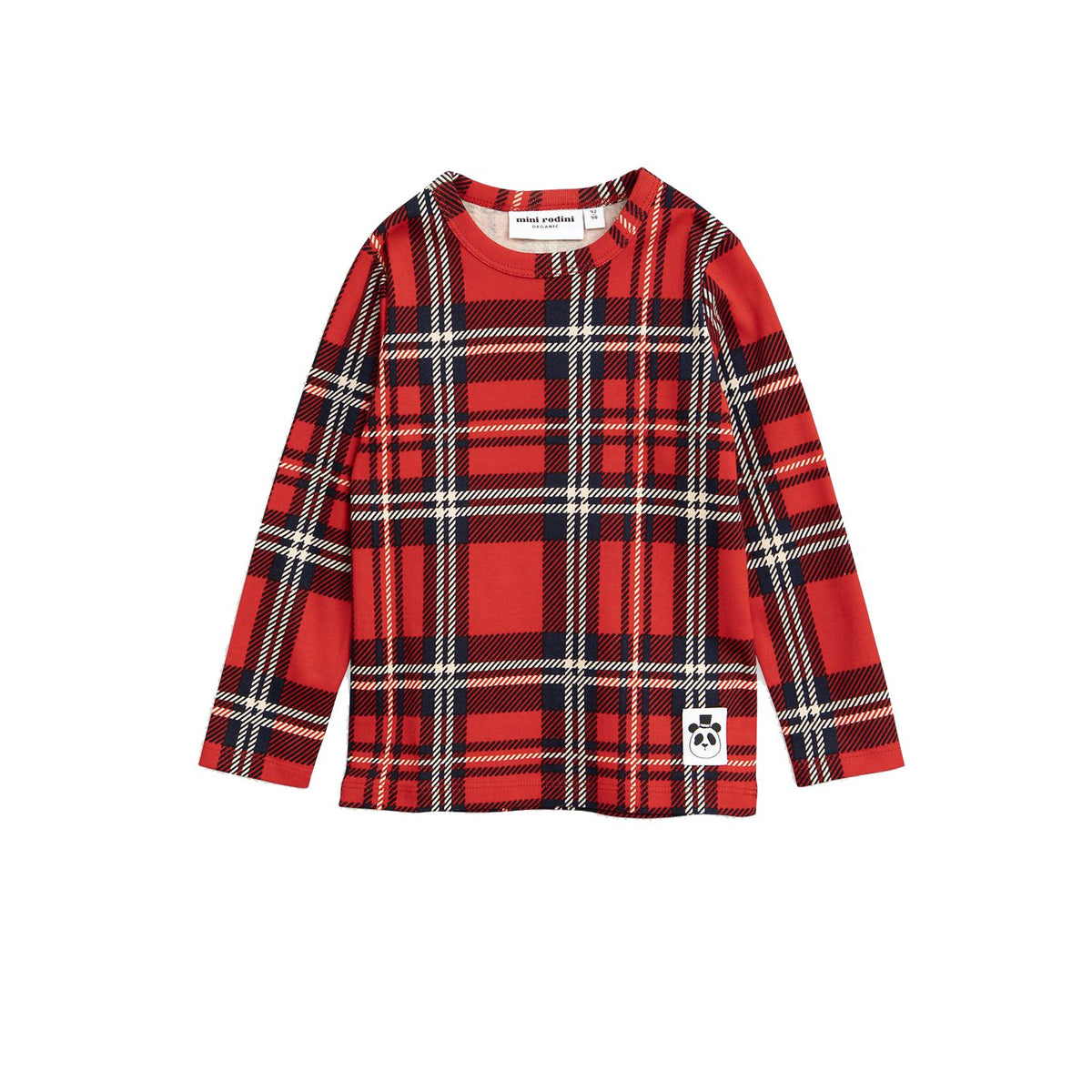 This red top is crafted from 100 % GOTS certified organic cotton. It is cut for a straight fit with long sleeves and features a tartan inspired check print and a small panda patch at front.