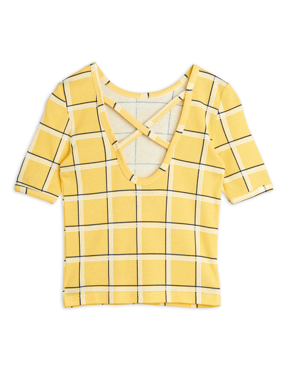 Check print made from 100 % GOTS certified organic cotton! The top features an open back with cross binding details and is designed for a snug fit.