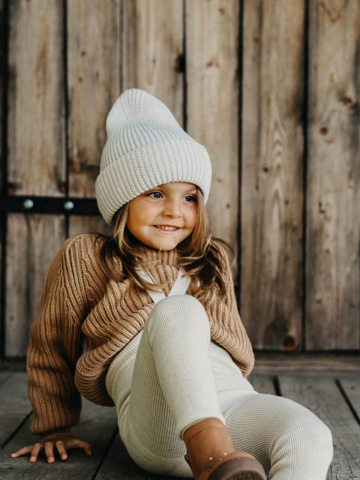 The unique combination of 59% merino wool and 41% organic cotton ensures the best comfort and thanks to its 100% natural fibers composition, it is suitable for the most sensitive baby skin. Merino wool is ultra-fine, supremely soft natural fiber that is breathable and helps to regulate the body temperature in both warm and cold weather. In the winter days, it absorbs the cold air and circulates the warmth. In summer days, it lets the body breathe while absorbing water from your little ones’ skin. It is also renewable and biodegradable. Thanks to its protein based composition, merino wool biodegrades after about a year in the ground.