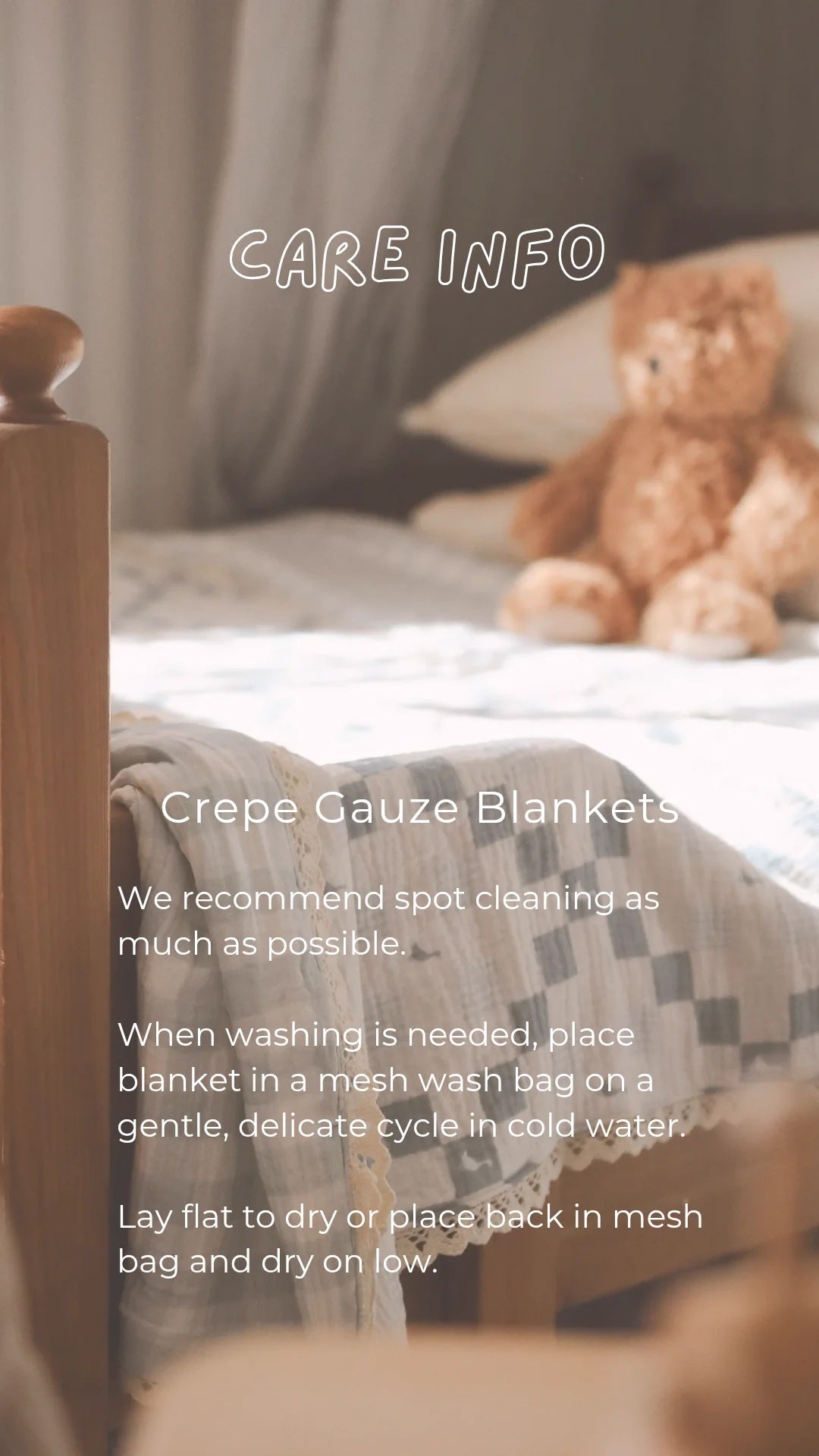 When washing is needed, place blanket in a mesh wash bag on a gentle, delicate cycle in cold water. Washing with other items is best as the blanket can get heavy when wet.