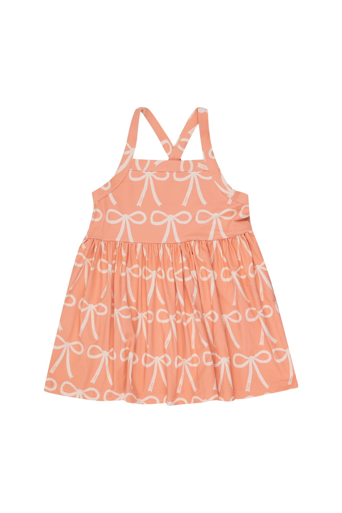 A little cute, a lot of cool. This dress with a playful bows all-over print is the perfect blend of functionality and style, designed to be worn both in the water or casually paired with leggings. Made from high-quality swim fabric, this dress offers ultimate comfort and flexibility, thanks to its elastic material that moves with you. Its short fit makes it ideal for a day at the pool, while the fun bow design adds a touch of charm. Whether you're swimming or lounging, this versatile dress is a must-have for effortless style.